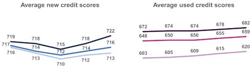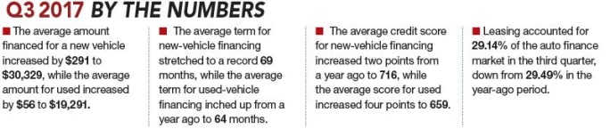 Credit scores reflected the contraction of the below-prime tiers. For new-vehicle financing, the average score rose from 712 in the year-ago period to 713. For used-vehicle loans, the average score rose from 655 to 659.