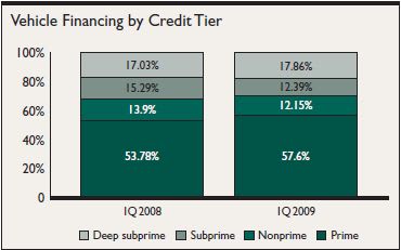 used-vehicle financing experienced greater deviations. Prime consumers financed