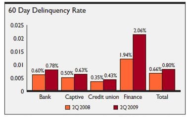 Automotive delinquency tends to increase on a cyclical basis, starting in the first quarter at the lowest point of the year and steadily increasing throughout the year. This year is no different. However, the quarterly rate of increase for 60-day delinquent loans slowed down compared to last year. Between the first and second quarters 2008, the 60-day delinquency rate increased 3.86 percent. The rate increased this year by 2.56 percent.