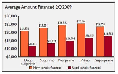 The difference in financing between new and used vehicles averaged around $9,200, with the greatest difference of $10,017 seen in the nonprime risk segment. This spread has increased over last year, with the average difference between new and used financing coming in at just under $8,000.
