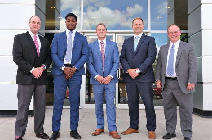 Pictured is Bob Moore Buick GMC’s F&I team, which includes (l-r) producers Bobby Trumbley, Robert Ali, and Matt McCaleb, F&I Director Jay Edwards, and the store’s General Manager George Miller.