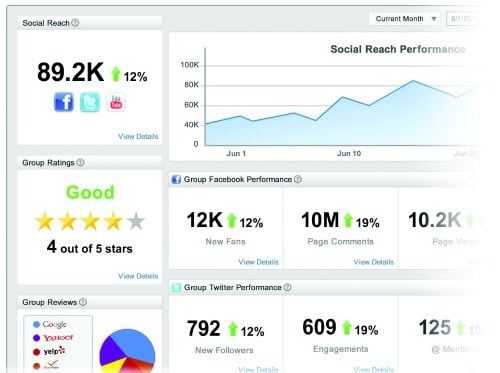 Dealer.com’s SocialRelationship Manager (left) is geared toward single-store dealers, while SOCIALDEALER’s Enterprise platform (below left) can be used to manage brand messaging across an entire dealer group. SOCIALDEALER also offers consulting services for dealer groups and has offered to manage their clients’ social media sites until the dealership staff is comfortable with its system.
