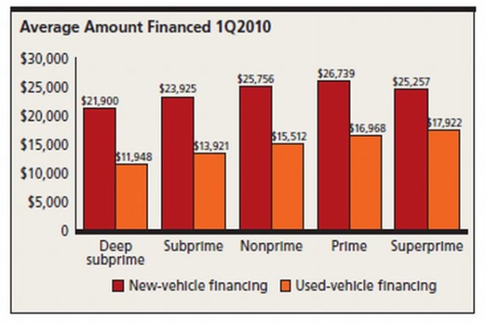 Used-vehicle financing increased across all risk segments. The greatest increase in the average amount financed was seen in the superprime segment, which jumped $1,281 to $17,922.