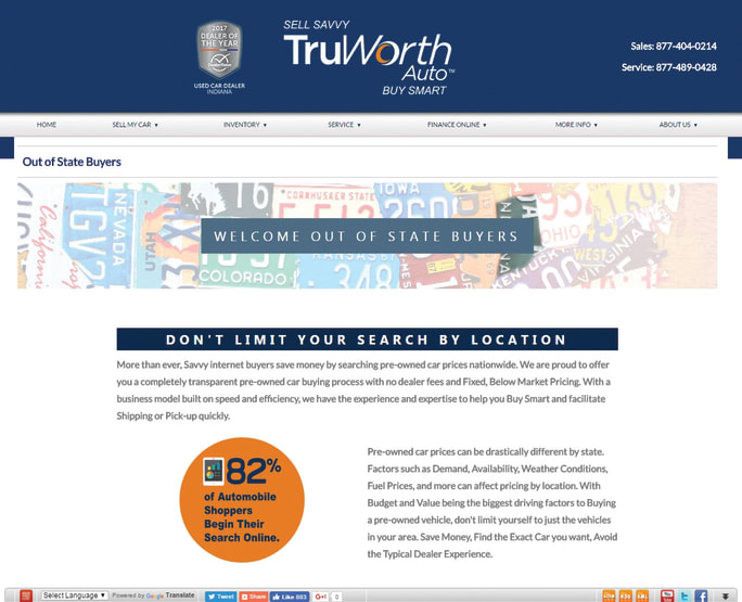 Based in Indianapolis, used-car superstore TruWorth Auto loudly promotes its out-of-state titling services on its website.