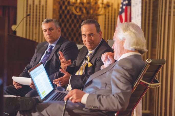 The 2015 Vehicle Finance Conference featured a general session on “Regulatory and Legal Uncertainties.” Moderated by Bill Himpler (center), executive vice president of the American Financial Services Association, the panel included Dan Soto (left), chief compliance officer for Ally Financial, and Mark Kenney, chairman of Severson & Werson.