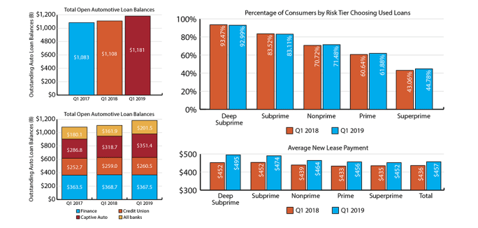 The automotive finance market has seen healthy growth over the past year, according to Experian’s most recent State of the Automotive Finance Market report. The total market balance for open automotive loans has jumped 6.5% year-over-year and reached a record-high market balance of $1.1 trillion in the first quarter of 2019.