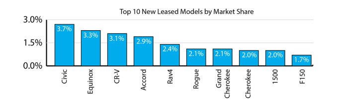 This rise in average lease payments is primarily driven by consumers’ vehicle preferences shifting from smaller cars to larger ones, in particular crossover vehicle models. Bigger cars typically mean bigger prices, and they now comprise the majority of the top leased vehicle models.