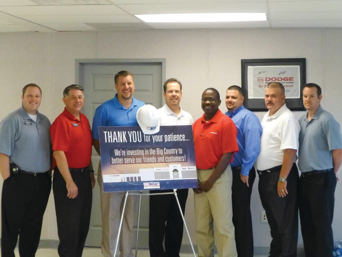 Star Dodge’s sales management team poses with a sign about a dealership construction project.