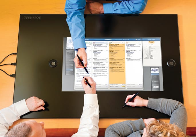 Last year, Reynolds and Reynolds redesigned the docuPAD’s physical components. The original docuPAD system featured a 32-inch display set atop a 3-inch platform that was built into a custom-made desk. Aside from the bigger display, the new version is no longer beholden to the desk. Reynolds also made some programming adjustments to improve the connection between the docuPAD and its Retail Management System.