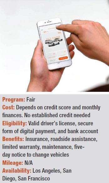 Fair’s Bauer shies away from the term “subscription service,” noting that such programs usually include an extreme premium price point. Fair, he says, is based on a “flexible ownership” model, with customers signing for a specific, pre-owned vehicle.