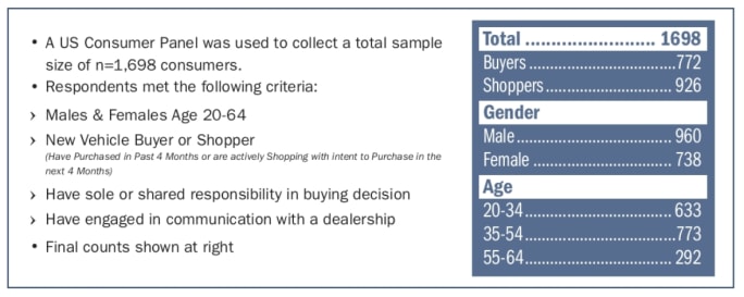 Mix of recent volume new vehicle purchasers (past four months) and near-term intenders that were actively shopping to purchase/lease a new volume-brand vehicle in the next three or more months