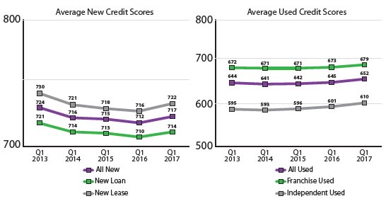 The result was a rise in average credit scores for both new- and used-vehicle financing. For the former, the average rose five points from a year ago to 717.
