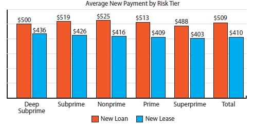 The likely reason for the shift toward low-risk tiers is the ample supply of late-model used units. Vehicles leased over the past several years have returned to the market as ideal candidates for certified pre-owned (CPO) programs. That’s likely the reason for the slight increase in the average monthly payment for a used vehicle, which inched up by $1 from a year ago to $363.