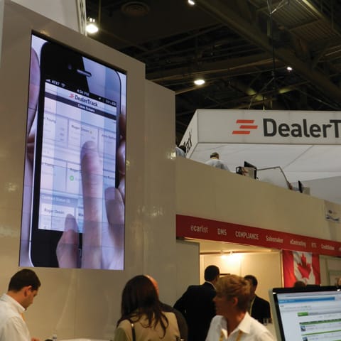 Running on the big screen inside the DealerTrack booth was a demo of the company’s new DealerTrack Mobile, which allows users to manage deals submitted through the company’s credit application network on their iPhone or iPad. “This is just the beginning,” said Raj Sundaram, senior vice president of the company’s Solutions and Services Group. “Our position on these mobile tools is the dealer is going to decide [how it fits into their process].”