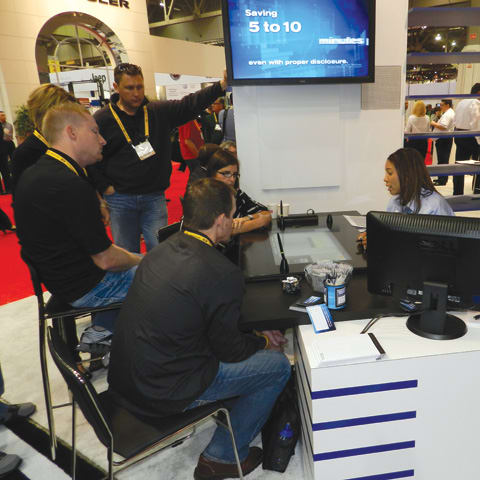 Inside the Reynolds and Reynolds booth, employees could be seen running through demonstrations of the company’s updated docuPad, which boasts a bigger screen and now sits on top of an F&I manager’s desk. Company officials believe the F&I selling system is what will connect the F&I process to techie generations.