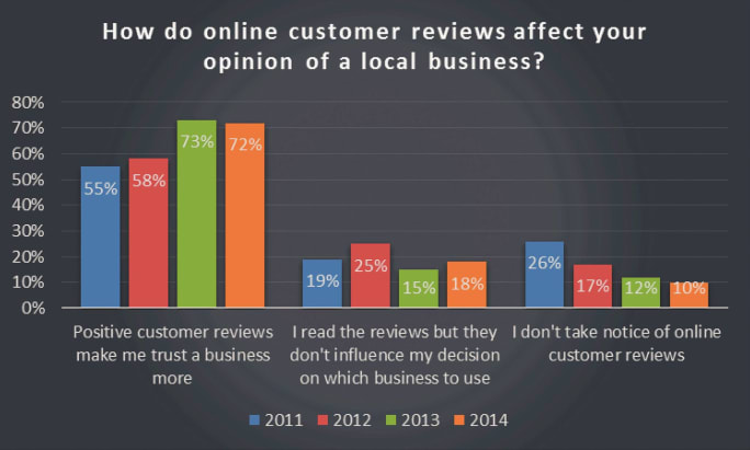 The London-based SEO firm asked more than 2,000 respondents 13 questions related to their consumption of online reviews. It found that 61% of customers have recommended a local business to someone they know by word of mouth, while 37% have used Facebook, 12% have used Twitter and 10% used Google+.
