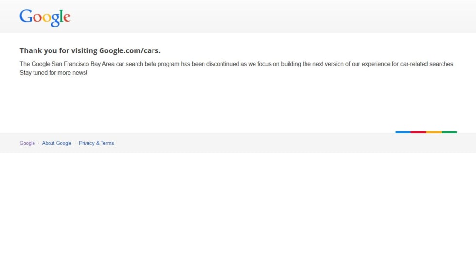 The beta program for Google Cars has ended, but the tech firm says the stoppage is only temporary as it works on the ‘next version’ of its vehicle-shopping tool.