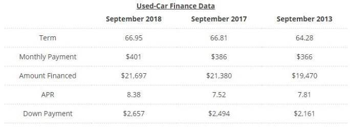 According to the firm, the average annual percentage rate for new-vehicle financing in September was 5.8%. That’s up from 4.8% in September 2017 and 4.1% five years ago. Interest rates have stayed above 5% for eight months now, mirroring APRs seen prior to the Great Recession.