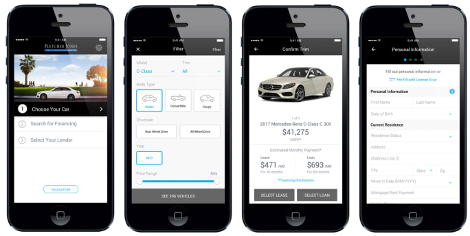 FJ Drive allows users to shop for specific vehicles sitting on the dealership lot by choosing a model or browsing all available cars. Guests can then apply for financing and review their lease or loan offer in the app before picking up their car at the Fletcher Jones showroom, according to AutoGravity’s Andy Hinrichs.