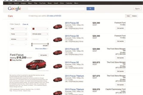 Since June 2012, online visitors searching for vehicles in the Bay area were directed to inventory of local dealers from Google’s homepage. But starting last week, Google began informing Google Cars users the program is only on hiatus.