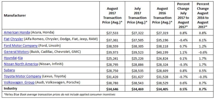 Despite the industry managing a near 1% increase, the firm noted, August revealed mixed average transaction prices across the major manufacturers.