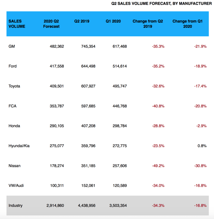 “It comes as no surprise that the second quarter was a disappointing one for the automotive industry, but the good news is that auto sales didn’t come to a complete standstill either,” said Jessica Caldwell, Edmunds’ executive director of insights. “The fact that retail sales — not fleet — are what kept the market propped up speaks volumes to the resilience of the American consumer. And the way that dealers were quick to pivot to online sales also underscores the incredibly responsive and resourceful nature of the industry in the face of adversity.”