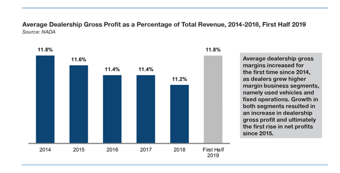 Analysts found a decline in new vehicle sales spurred dealers to turn to their higher-margin business segments, including used-vehicle sales, F&I, and fixed ops. The result was a marked increase in gross profit and earnings.