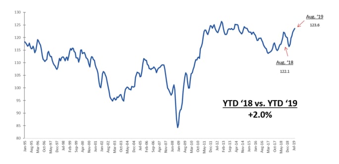 The report also charts a 0.4% month-over-month decline in wholesale prices. On the new-vehicle side, per-unit factory incentives increased to $4,154 per unit, a 7.1% year-over-year increase, and incentive spending as a percent of MSRP grew to 10.5%. But a combination of segment mix and higher prices drove the average new-vehicle transaction to just over $33,000, a 4.5% increase over August 2018.