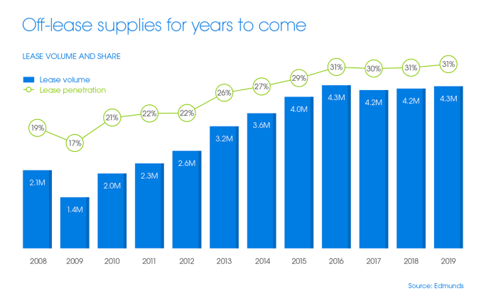 Looking ahead, Edmunds experts note that trend of nearly new vehicles flooding the used market doesn’t have an end in sight, given that 2019 is shaping out to be another high-volume year for retail lease sales.