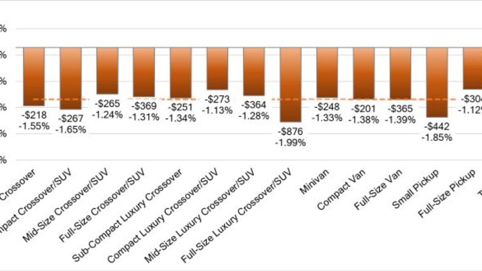 The full-size luxury crossover/SUV segment had the largest decline at 1.99%, setting a record as its largest single-week decline.