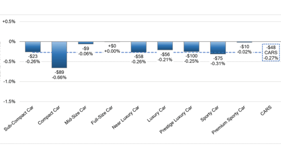 The compact car segment had the largest decline among cars, though it was still less than the prior week’s decline of 0.94%.