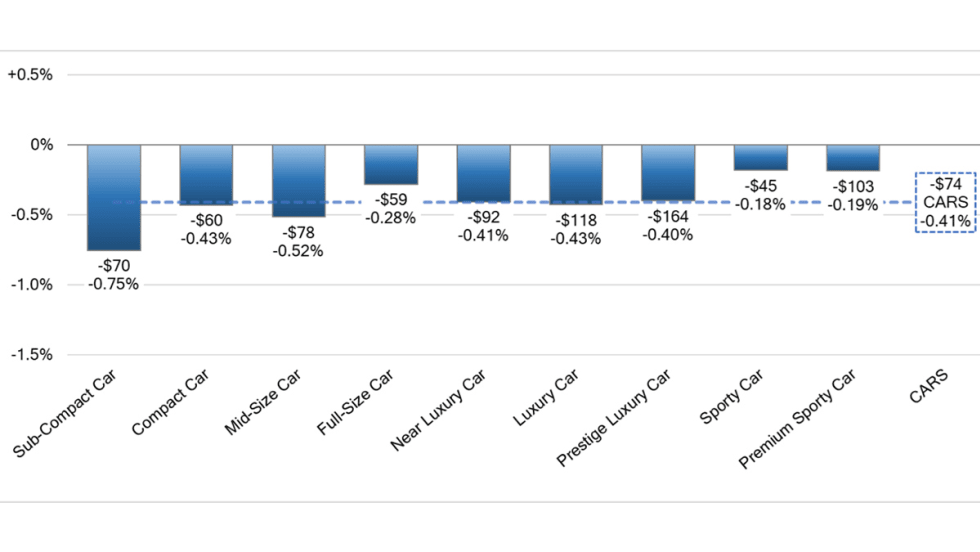 Sub-Compact Car reported the largest drop last week, down -0.75%. The prior week, the segment also had the largest decline for cars, with a decrease of -0.89%.