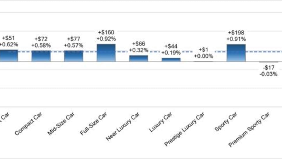 It was the first time the prestige luxury car segment increased in value since last June.