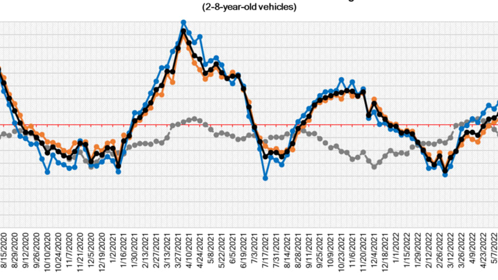 Kelly Blue Book data show prices up year-over-year in December.