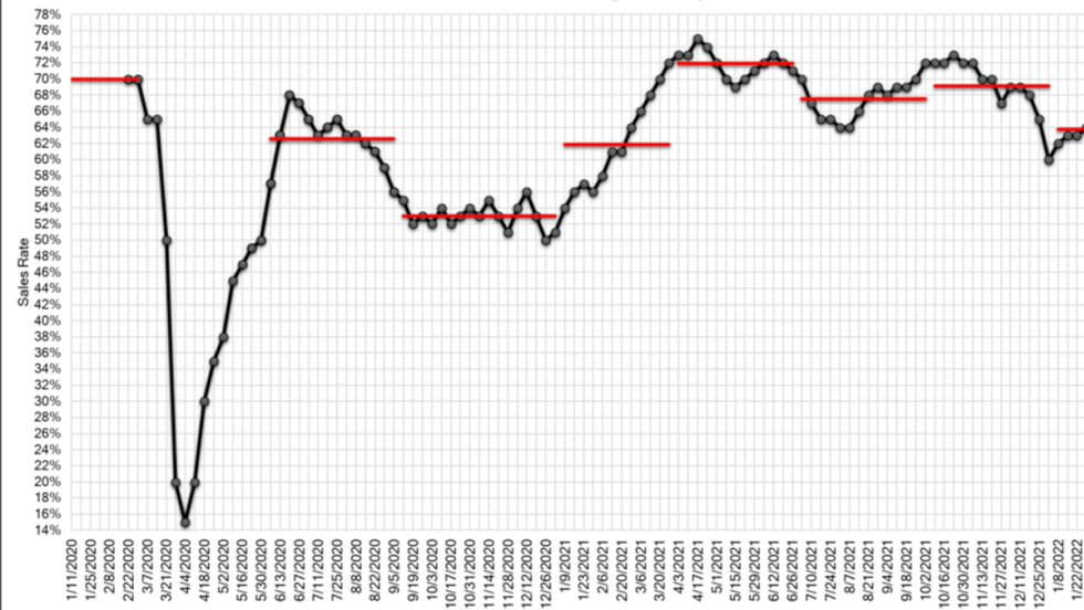 The Estimated Average Weekly Sales Rate dropped to 53% last week.
