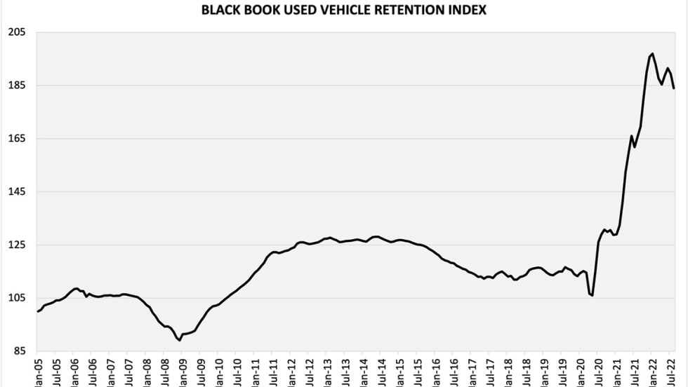 The Retention Index continues to decline in August, finishing the month at 184.0 points as consumer demand for used vehicles weakened.