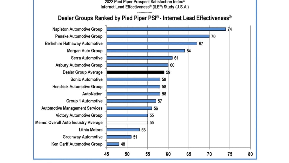 Napleton Auto Group topped the ranking, followed by Penske Automotive Group in the second spot, and Berkshire Hathaway Automotive in the third.