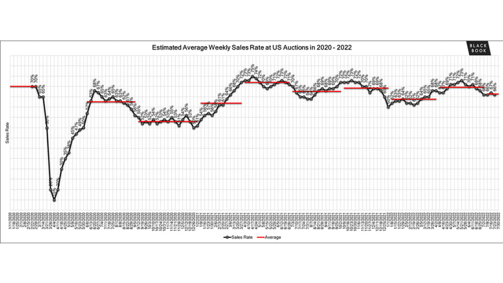 The Estimated Average Weekly Sales Rate remains somewhat stagnant, around the 66% mark.