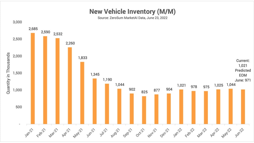 This June, ZeroSum data shows that new vehicle inventory levels remain flat, while used vehicle inventory decreased almost two percent.