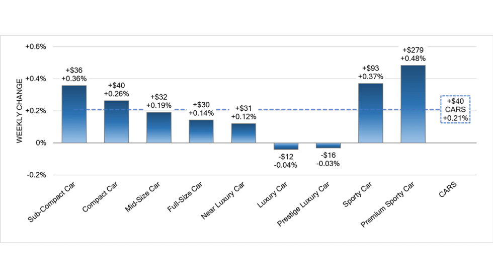 Sporty Cars traditionally decline during this time of year, but the segment is still reporting increases with an average weekly increase of +0.24% over the last eleven weeks.