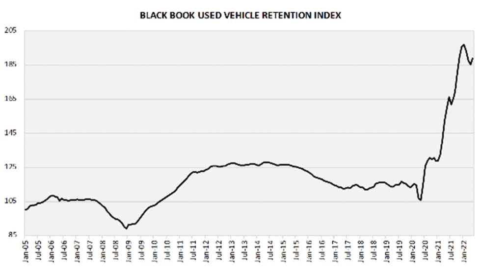 Index reverses a 3-month slide and increases to 188.8 points in May 2022 as tight new inventory and record low incentives push used wholesale prices up across most segments.