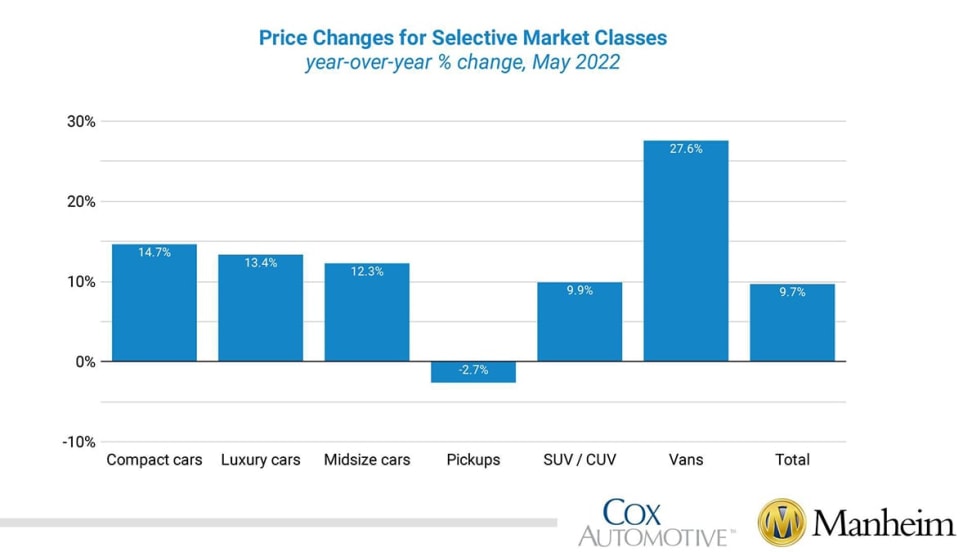 All major market segments saw seasonally adjusted prices that were higher year over year in May, except for pickups.