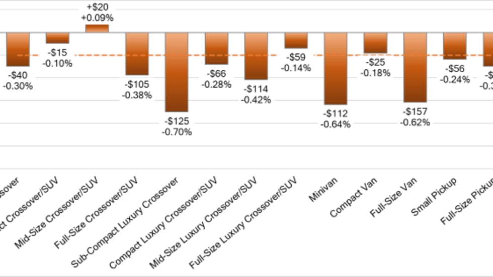 The truck submarket fell the most and more than the week before, all 13 segments declining.