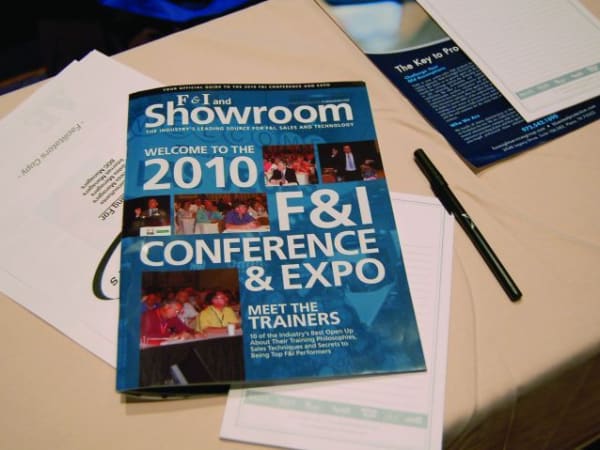 The 7th annual F&I Conference and Expo took place Sept. 14–15, 2010, at the Paris Las Vegas hotel and casino. The two-day show brought together dealer principals, F&I managers, business managers, trainers, agents and industry executives. The show featured keynote speeches, panel discussions and workshops covering F&I sales technique, deal structuring, compliance, Internet sales, mobile marketing, social media and more.