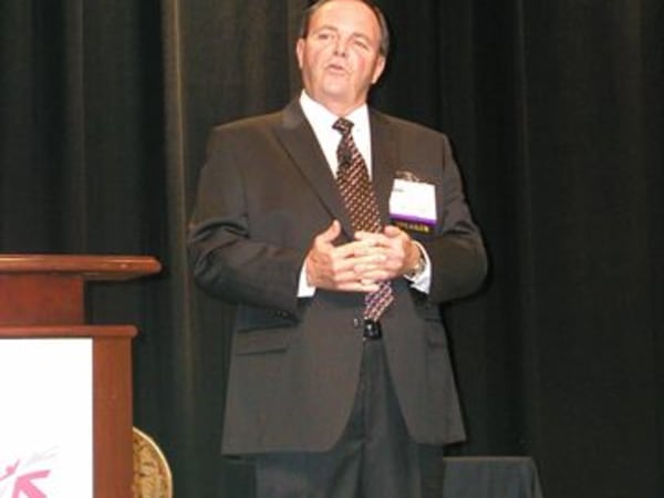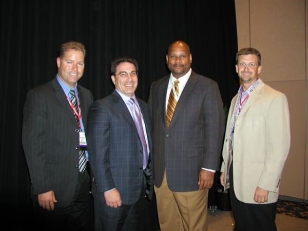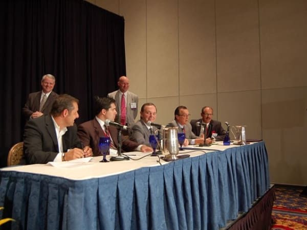 Building Value in Today's F&I Presentations panel session (left to right): (moderator) Rick McCormick, Reahard and Associates; Patrick DeMarco, Ristken Software Services; Jim Maxim Jr., MaximTrak Technologies; (emcee) Tony Dupaquier, American Financial & Automotive Services; Ron Martin, The Vision of F&I, "Mad" Marv Eleazer, <i>F&I</i> columnist.