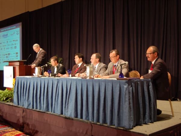 Building Value in Today's F&I Presentations panel session (left to right): (moderator) Rick McCormick, Reahard and Associates; Patrick DeMarco, Ristken Software Services; Jim Maxim Jr., MaximTrak Technologies; Ron Martin, The Vision of F&I, "Mad" Marv Eleazer, <i>F&I</i> columnist.
