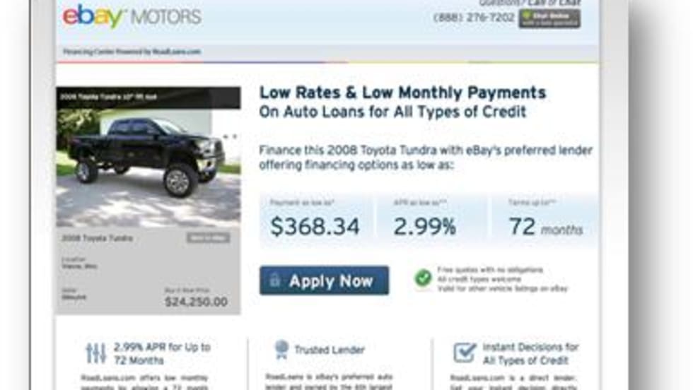 eBay Motors is the latest online vehicle-buying marketplace to sign up with the online finance source.