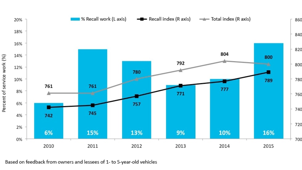 Service satisfaction is on the rise despite the three-year increase in vehicle recalls, according to J.D. Power. The firm also reported that customer satisfaction was significantly higher at dealerships offering service express lanes.