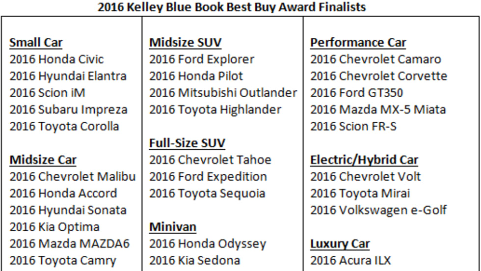 Finalists Chosen for Kelley Blue Book Best Buy Awards
