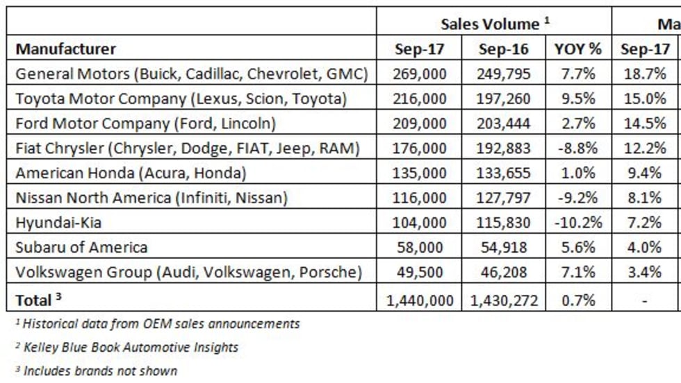 Read More →Despite the expected decline, October looks to be relatively strong on strong replacement demand in hurricane-impacted states and higher incentive spending. Kelley Blue Book analysts, however, believe these are indicators that new-vehicle demand is still contracting.